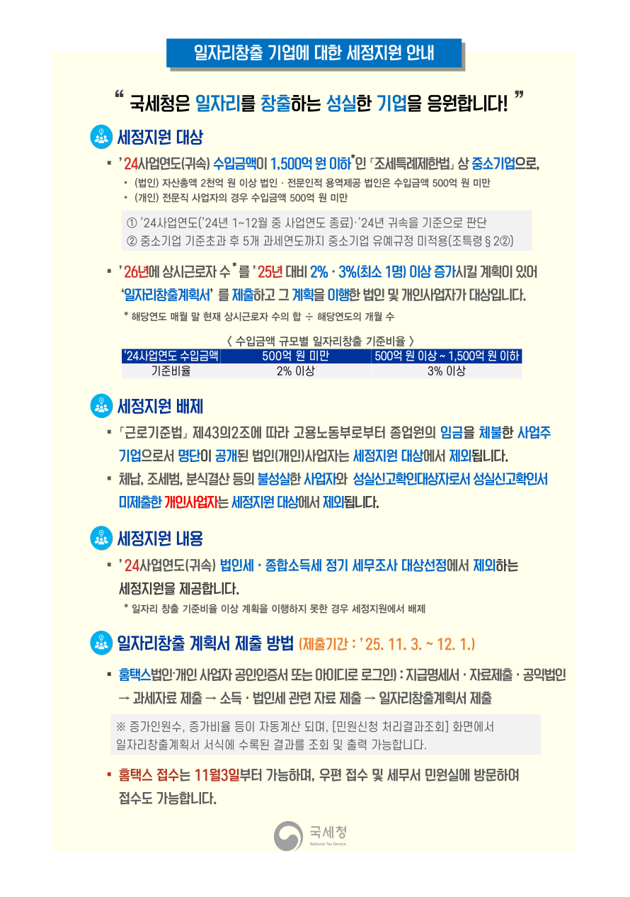 일자리창출 기업에 대한 세정지원 안내