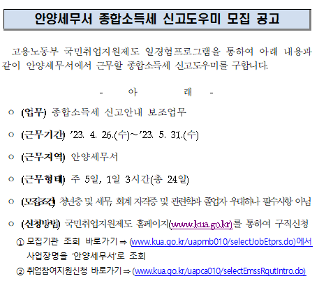 종합소득세 신고도우미 모집 공고