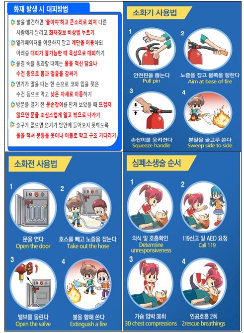 - 전 직원 소화기, 옥내소화전, 심폐소생술 익히기 운동 전개