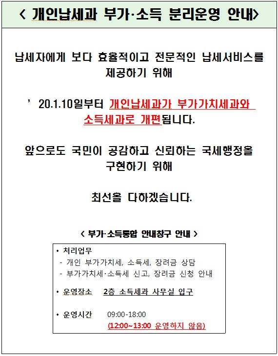 개인납세과 부가 소득 분리운영 안내