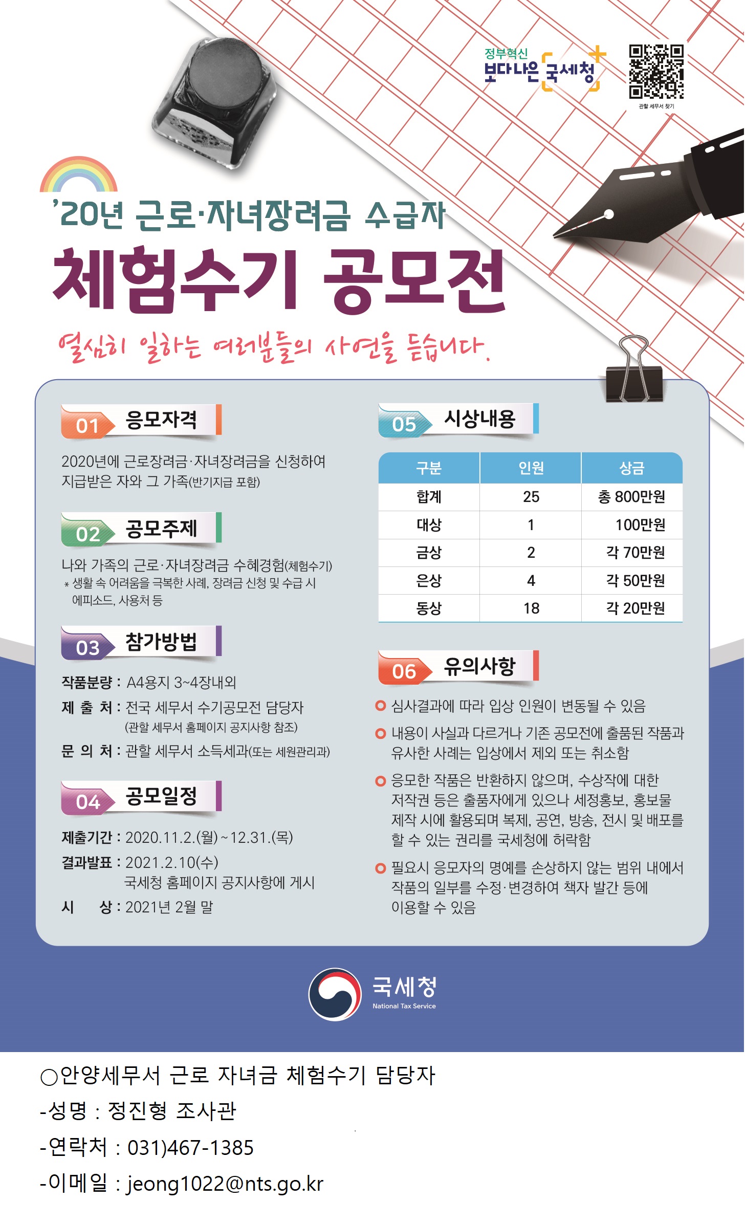 20년 근로ㆍ자녀장려금 수급자 체험수기 공모전