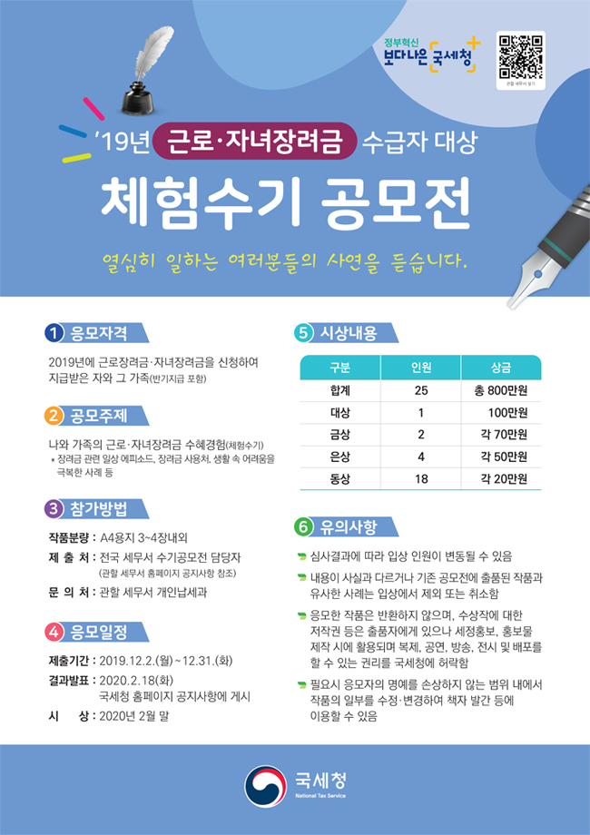 * 안양세무서 근로 자녀장려금 체험수기 공모전 담당자