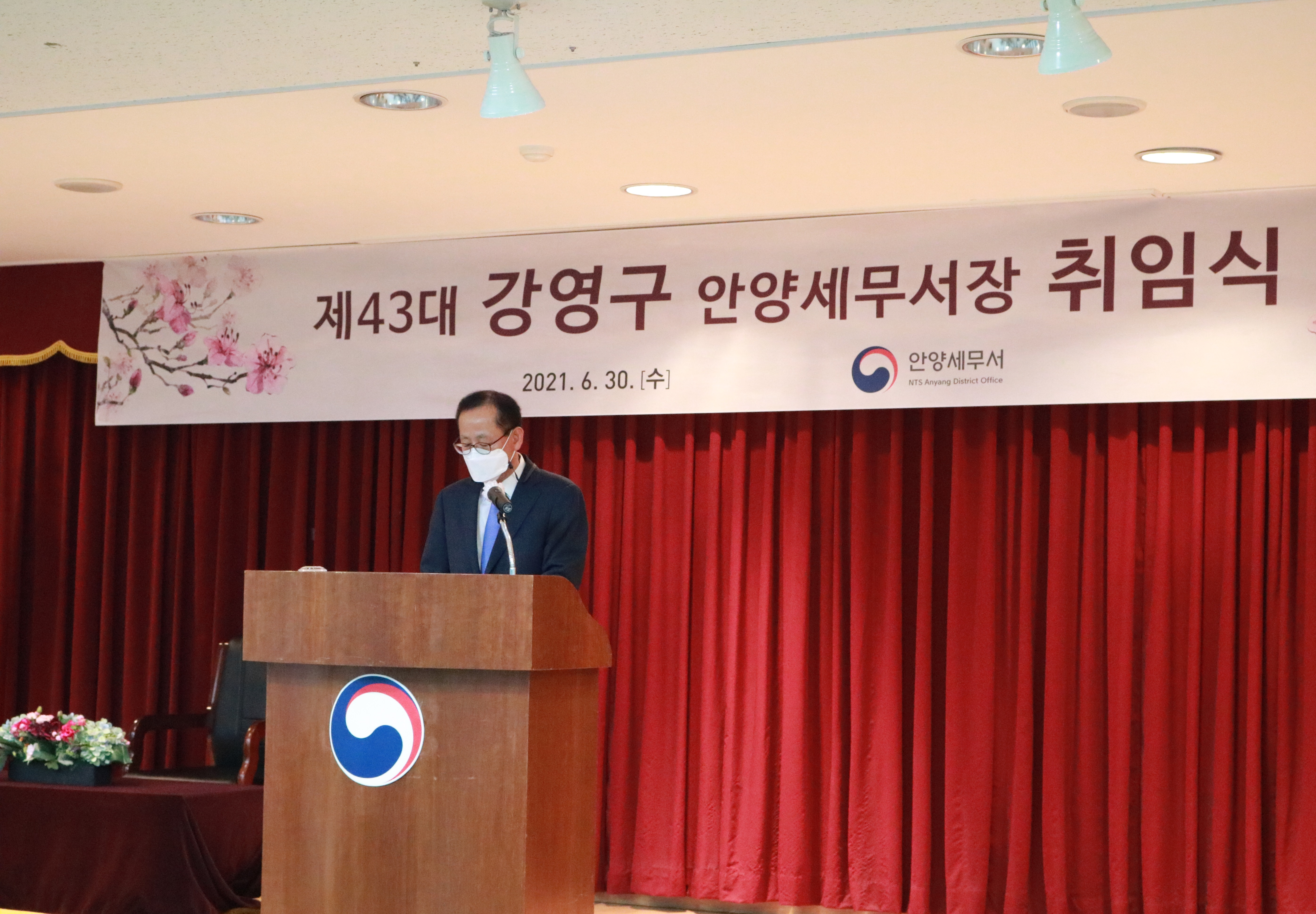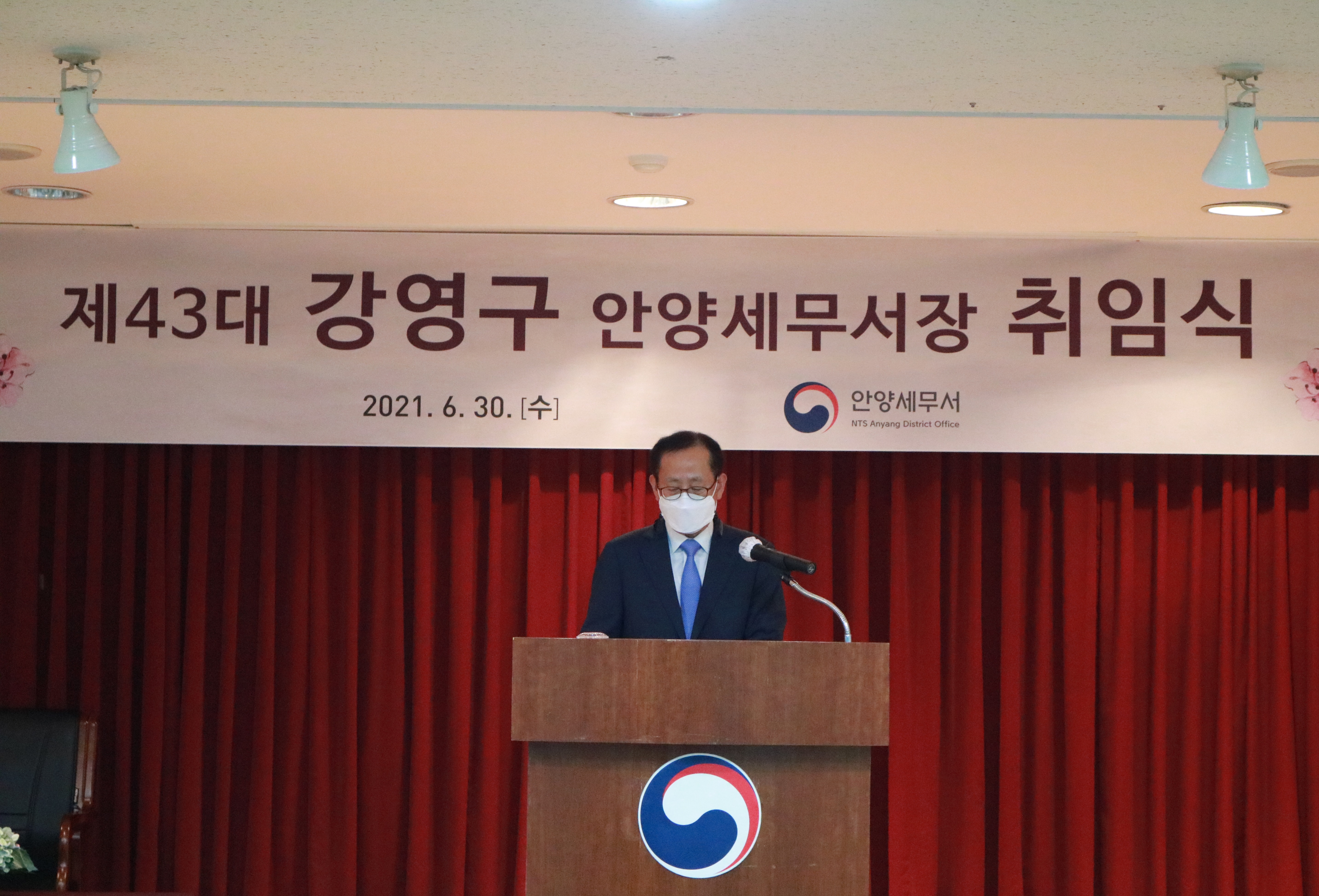 제43대 강영구 안양세무서장의 취임식이 2021.6.30.(수) 안양세무서 1층 대회의실에서 개최되었습니다.