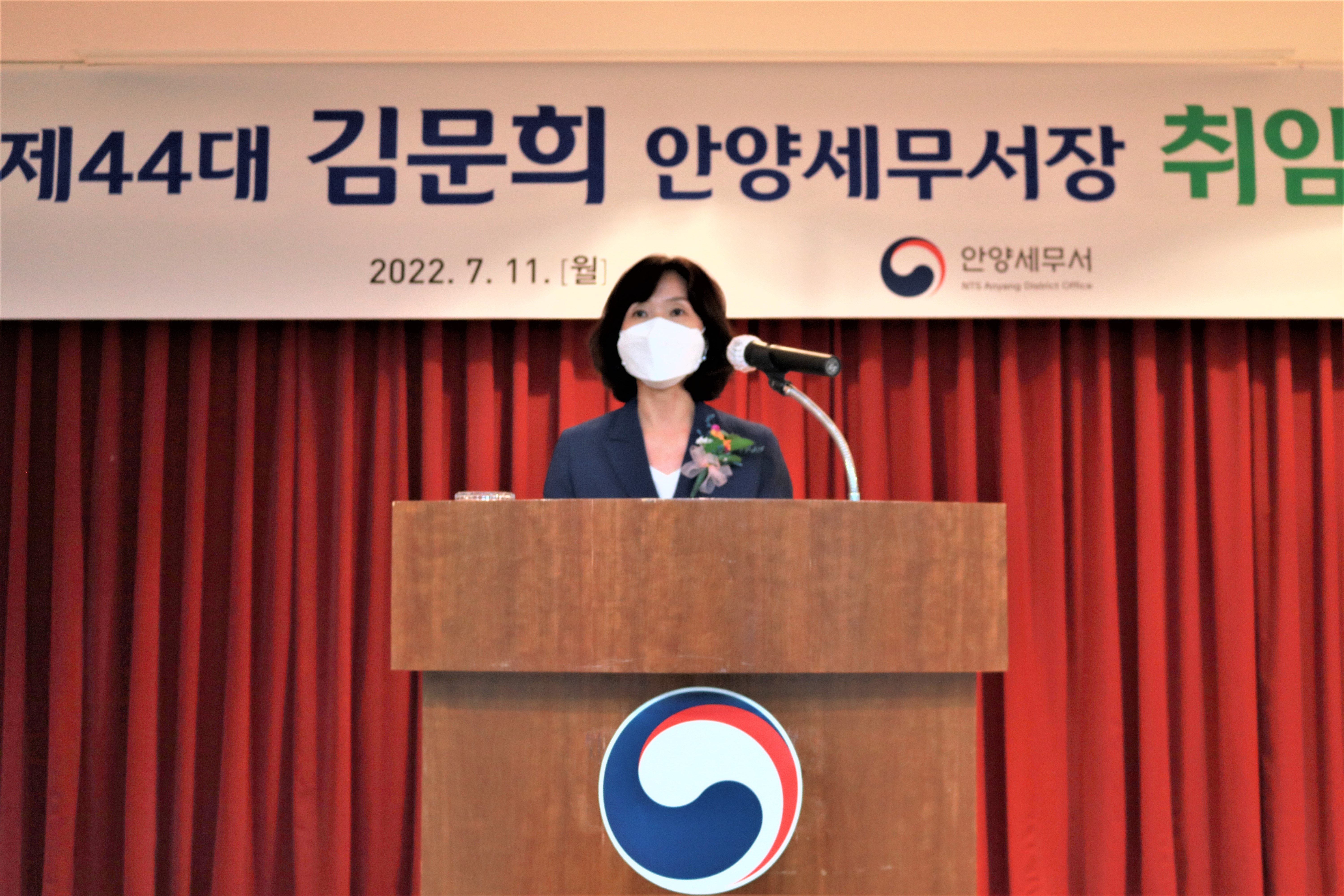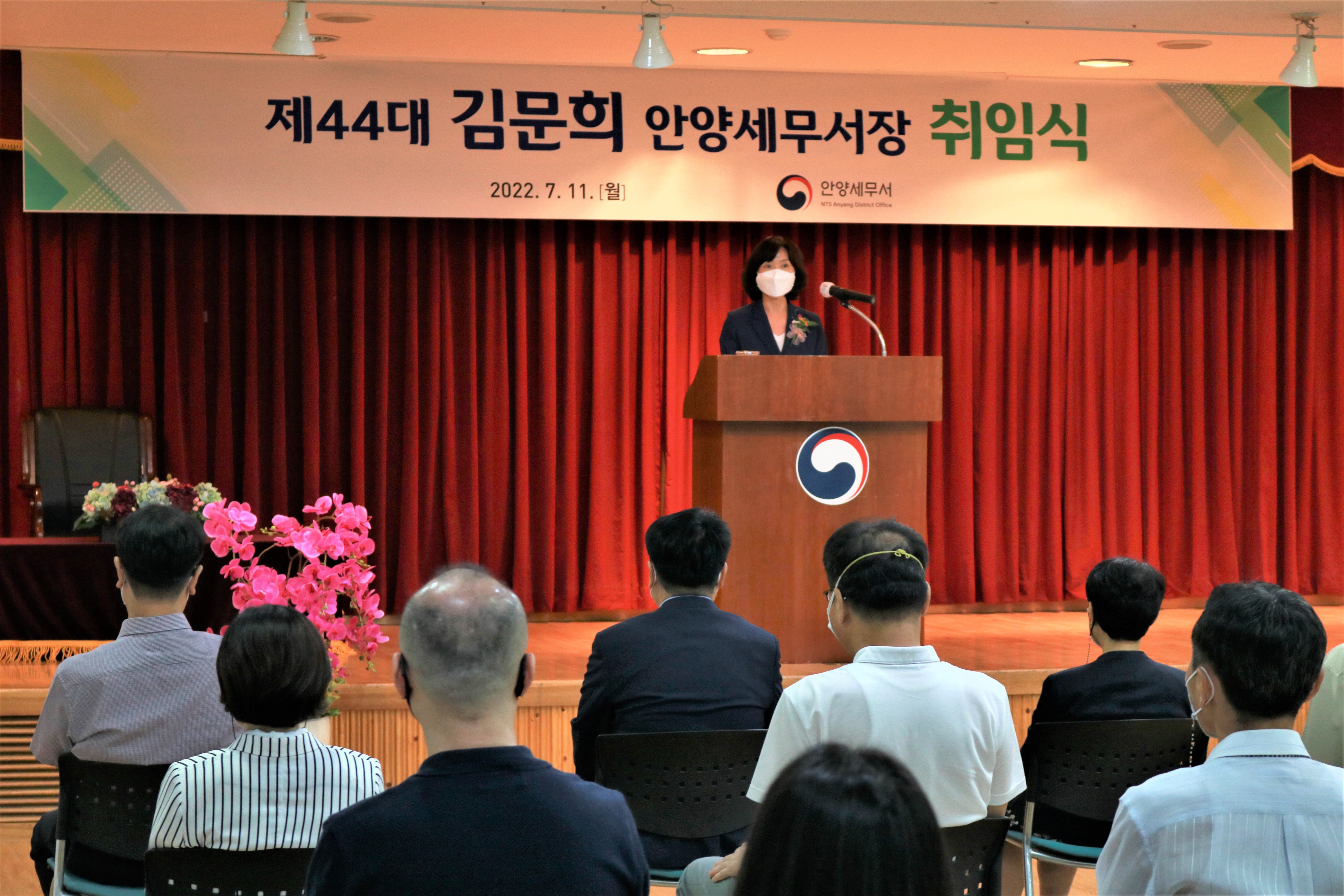 제44대 김문희 안양세무서장의 취임식이 2022.7.11.(월) 안양세무서 1층 대회의실에서 개최되었습니다.