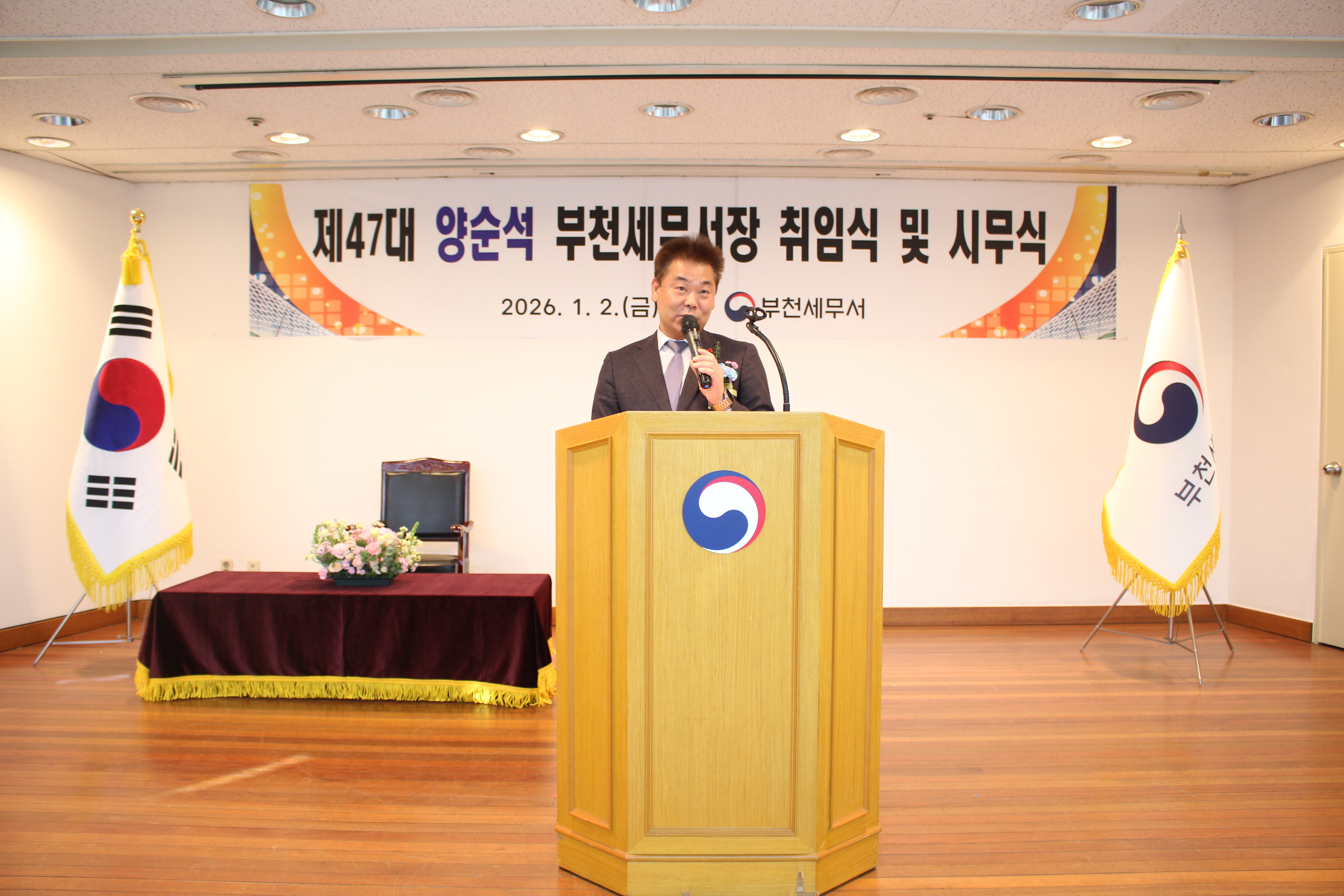 부천세무서(서장 양순석)는 2026년 1월 2일(금), 4층 대회의실에서 양순석 제47대 부천세무서장의 취임식을 하였습니다.