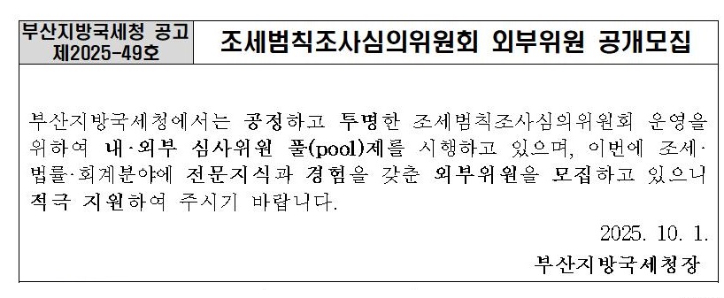 조세범칙조사심의위원회 외부위원 공개모집