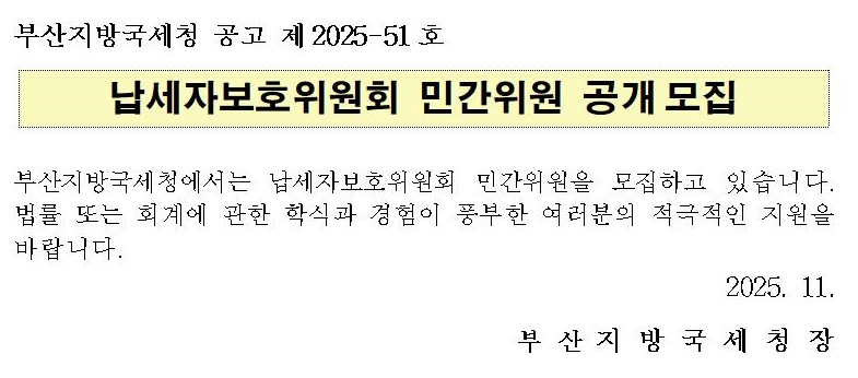 동래세무서 납세자보호위원회 민간위원 공개모집