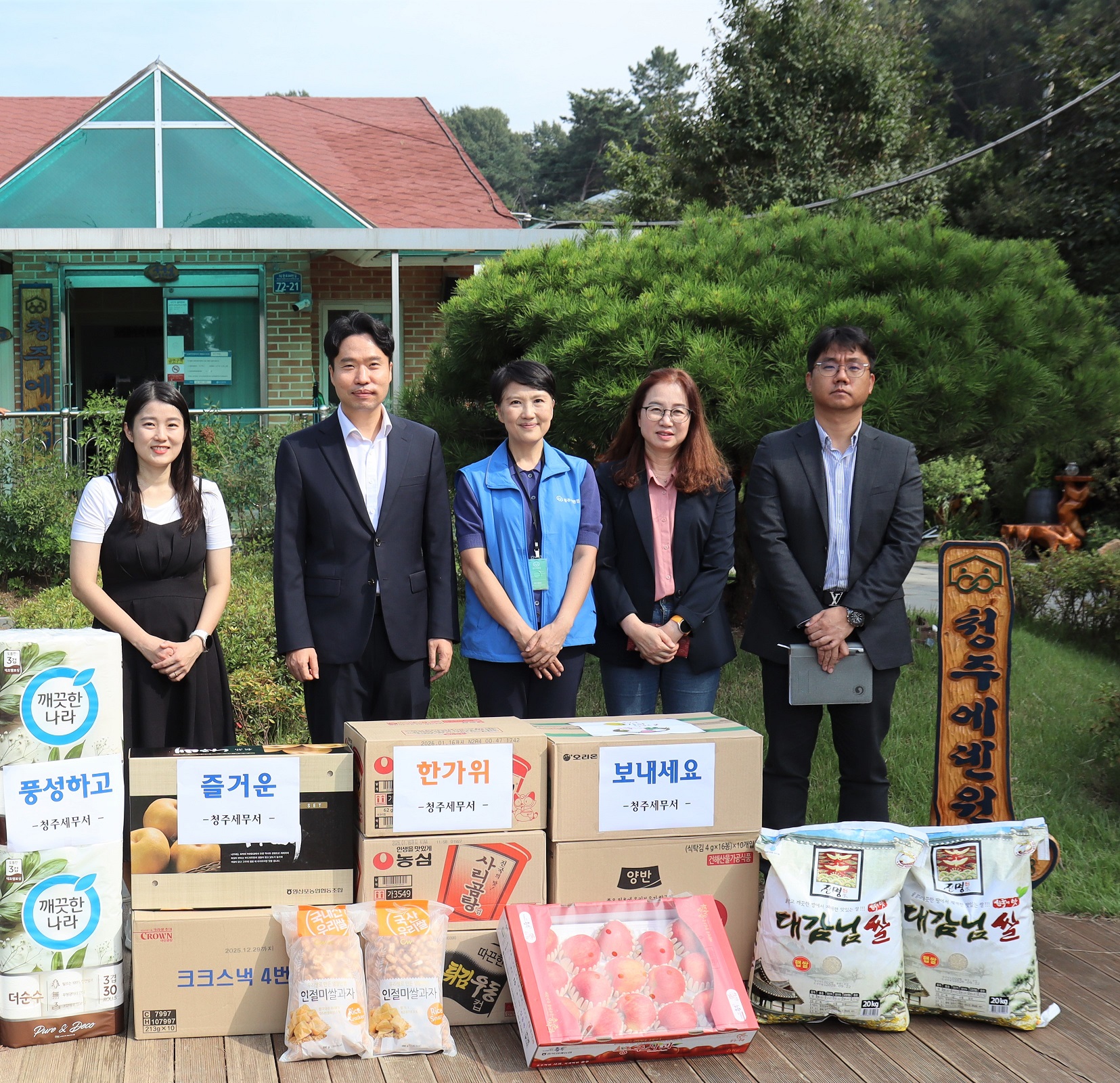 청주세무서(서장 윤현구) 직원들은 추석 명절을 앞둔 9월 26일, 관내 장애인복지시설인 청주에덴원을 방문하여 식자재와 생필품 등 위문품을 전달하였습니다.