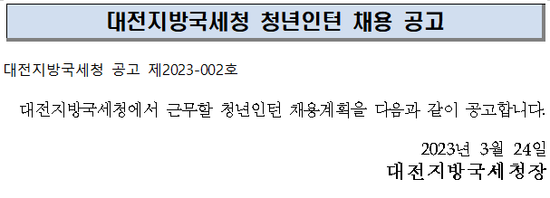 대전지방국세청 청년인턴 채용 공고