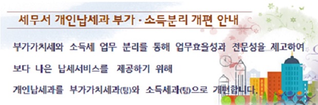 세무서 개인납세과 부가, 소득분리 개편 안내