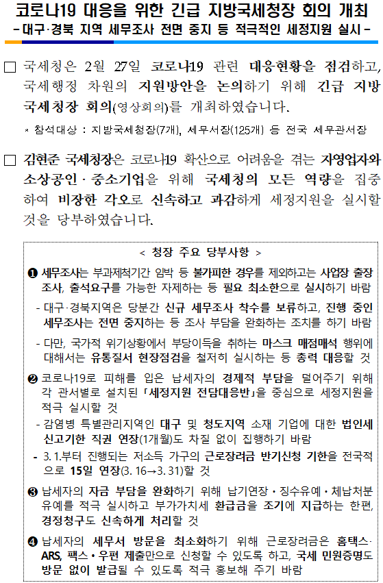 200227_코로나19 대응을 위한 긴급 지방국세청장 회의.hwp