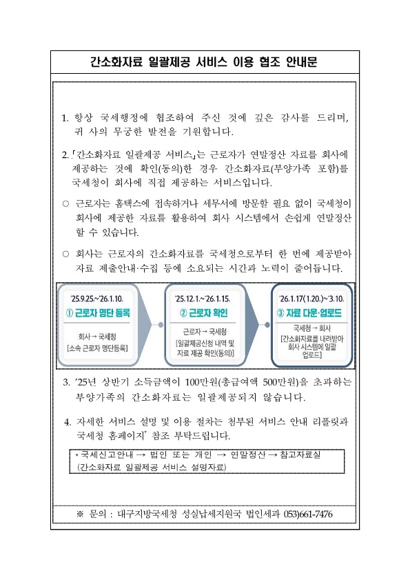 연말정산 간소화자료 일괄제공 서비스 이용 협조 안내