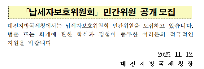 국세청 공무원(일반임기 6급, 납보실장) 경력경쟁채용시험 재공고