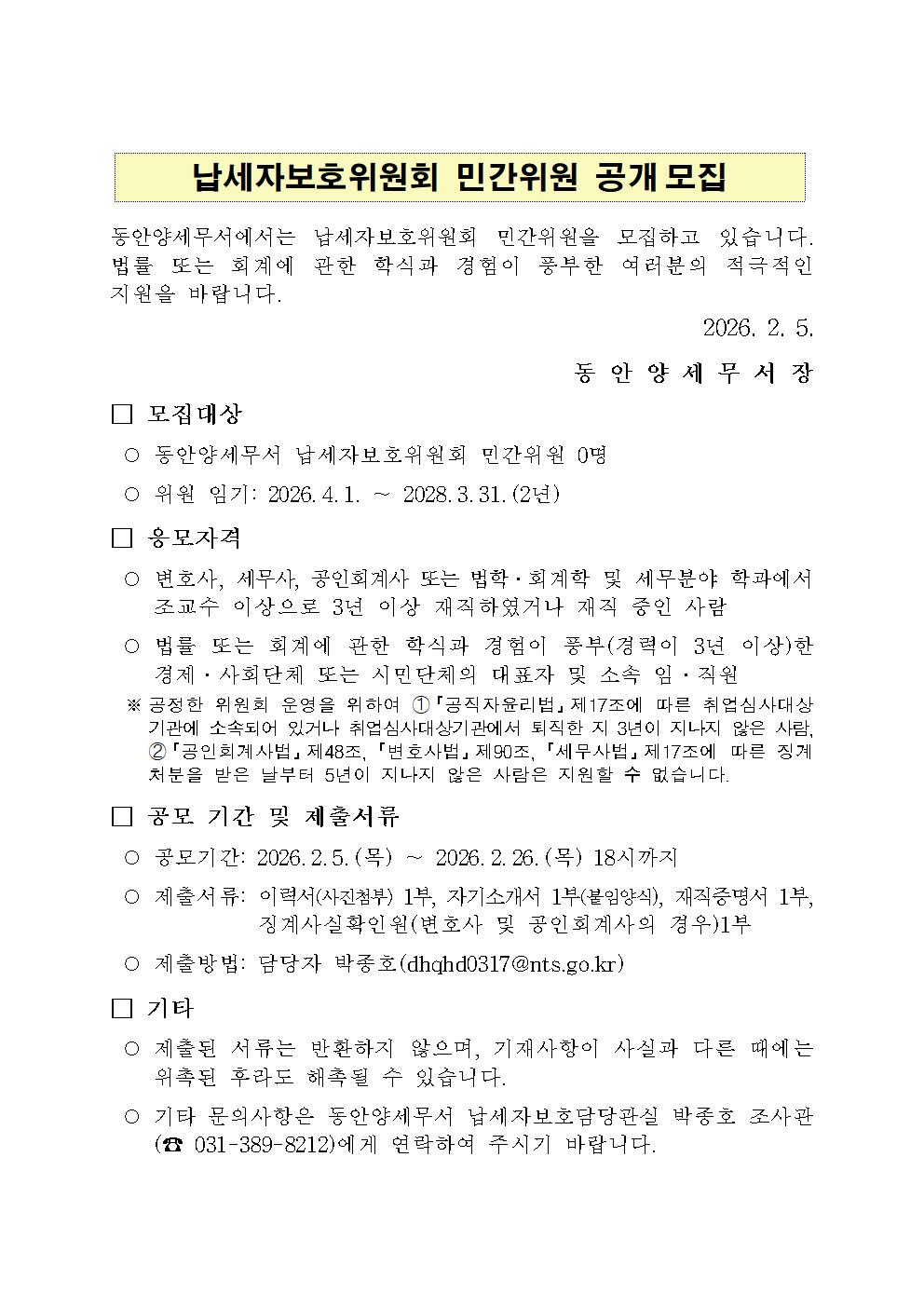 동안양세무서 납세자보호위원회 민간위원 공개모집.hwpx
