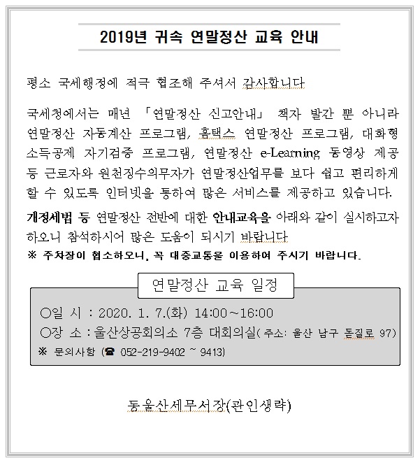 2019년 귀속 연말정산 교육 안내
