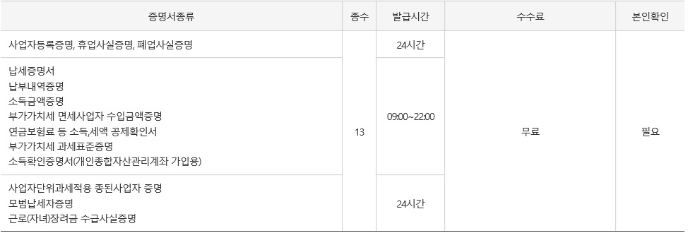 전국 지자체에서 운영중인 무인민원발급기를 이용하여 국세증명 발급이 가능합니다.