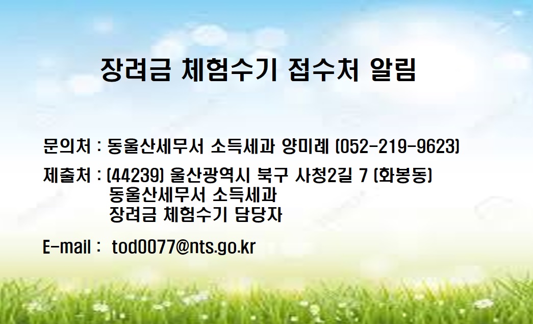 장려금 체험수기 접수처 안내