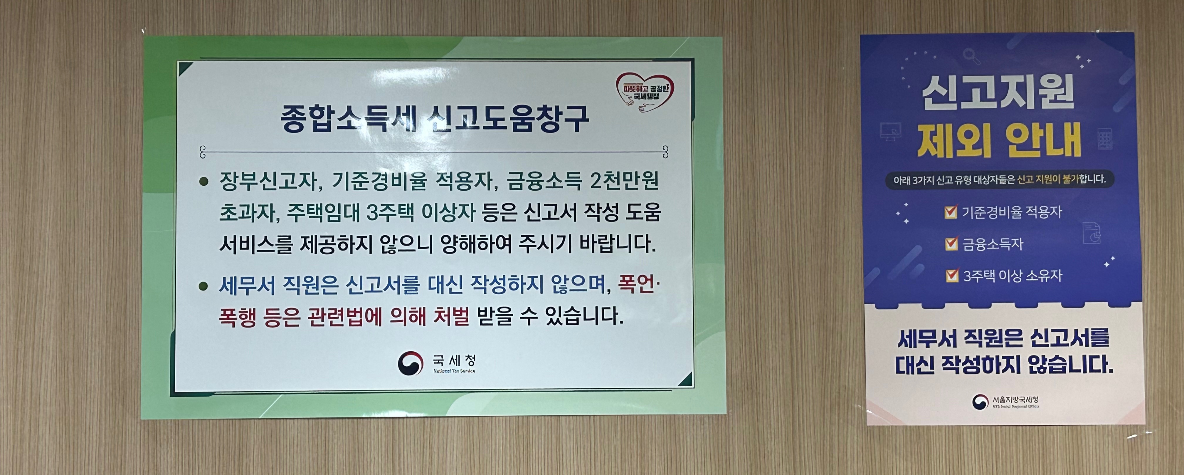 ※ 기준경비율 적용자, 금융소득자, 3주택 이상 소유자는 신고창구에서 신고도움서비스를 제공하지 않습니다.