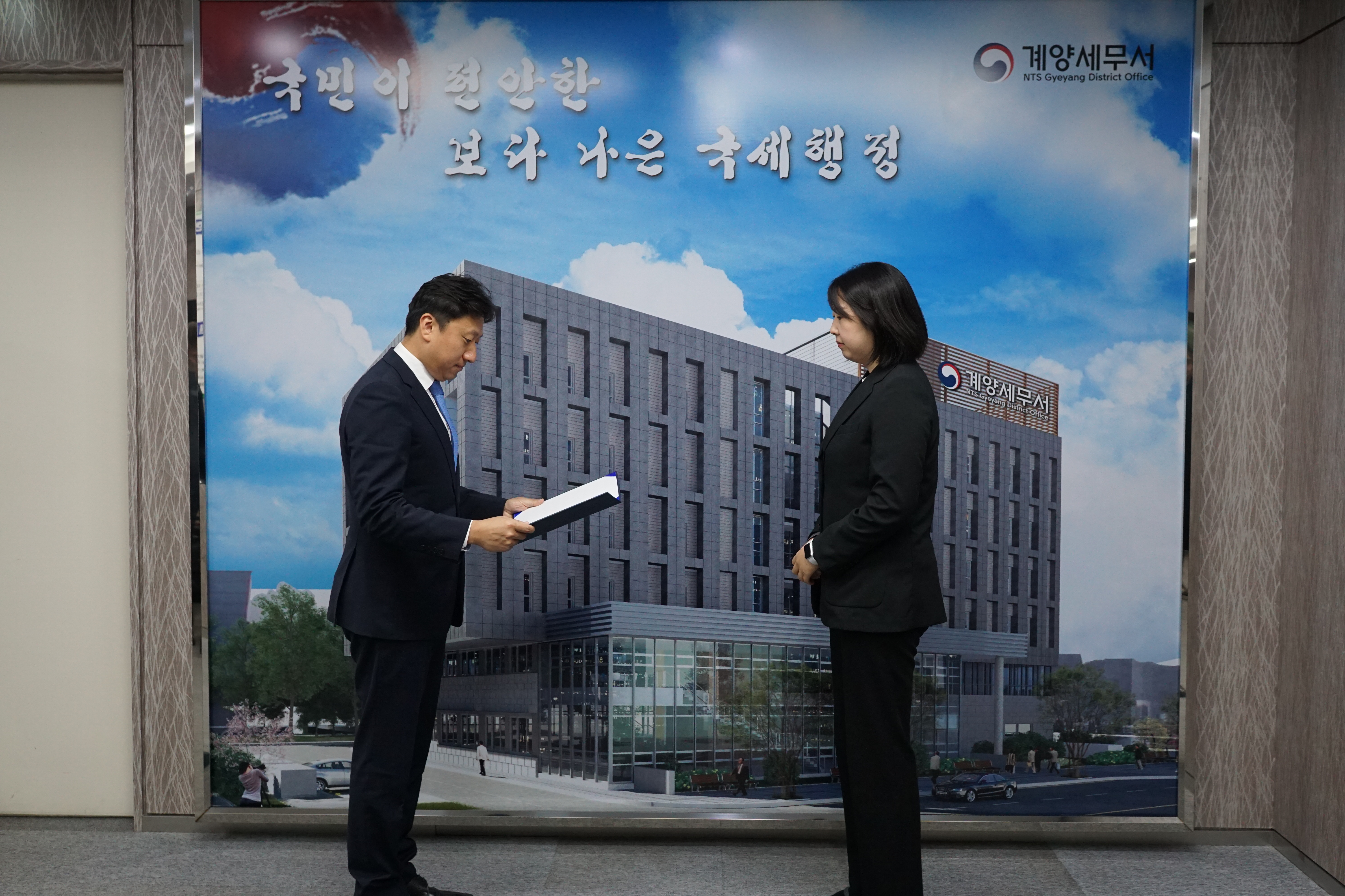 계양세무서(서장 임경환)는 2025.10.27. 신규 임용직원에 대한 인사발령식을 진행하였습니다.