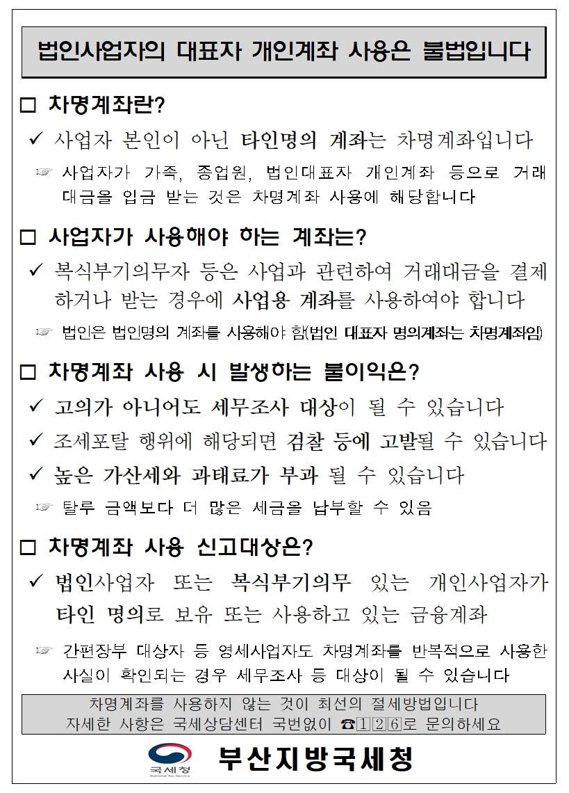 사업자 차명계좌 사용에 따른 불이익 안내