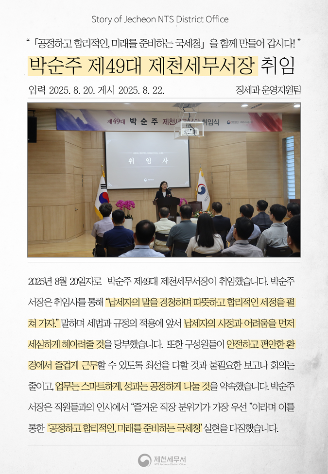 제49대 박순주 제천세무서장 취임식