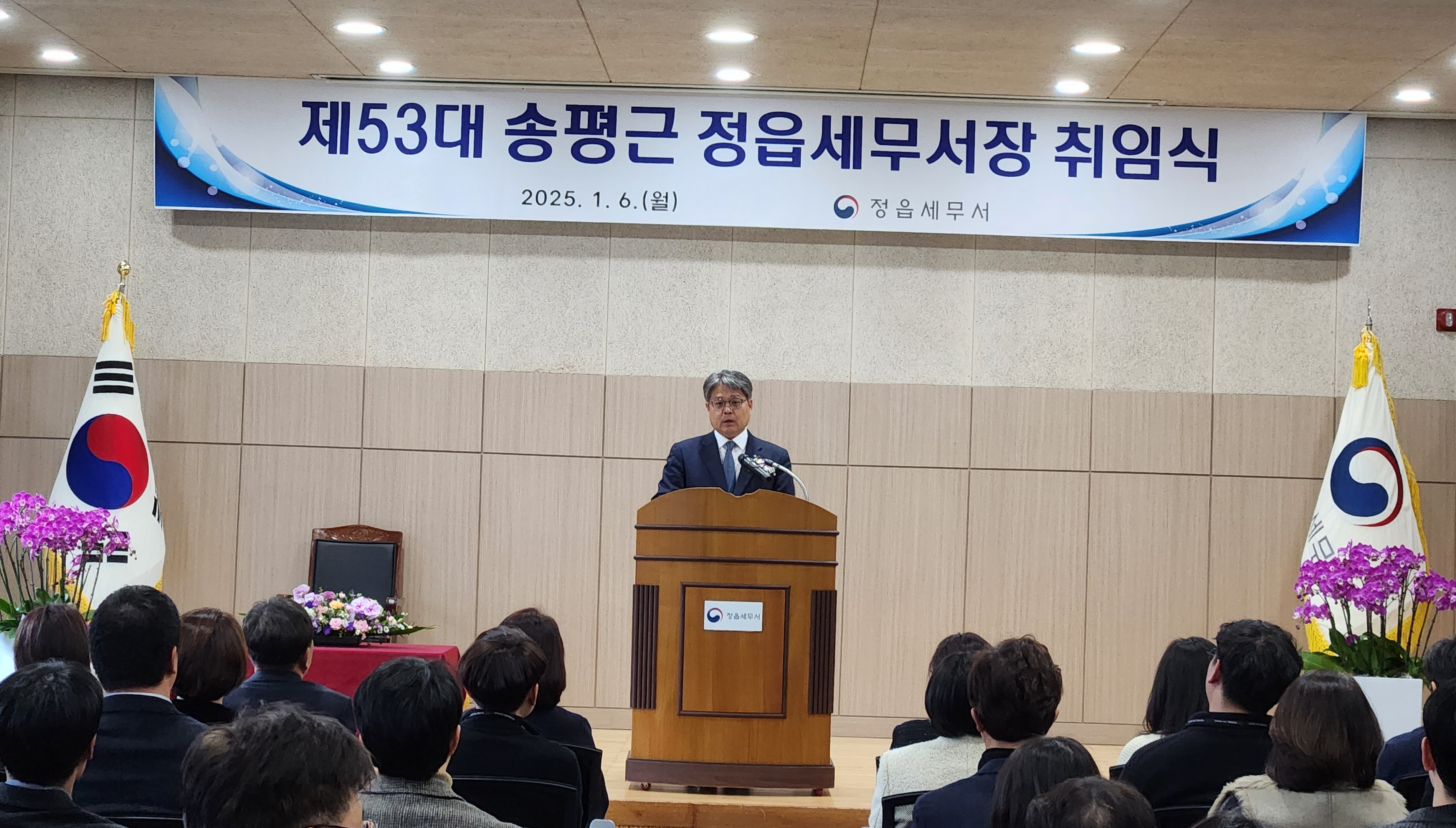 정읍세무서는 2025.1.6.(월) 3층 대회의실에서 제53대 송평근 정읍세무서장의 취임식을 개최하였습니다.