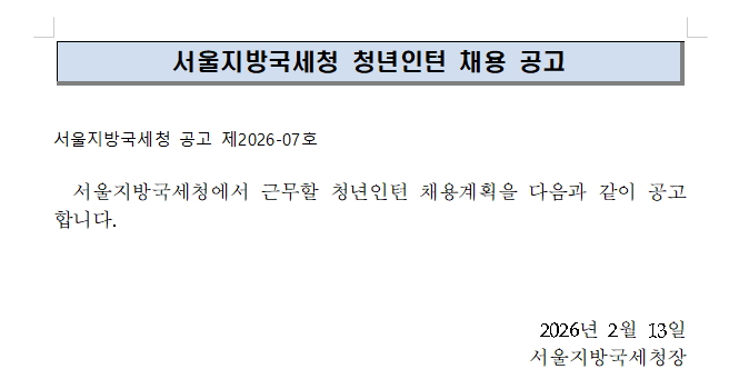 2026년 서울지방국세청 청년인턴 채용공고.hwp