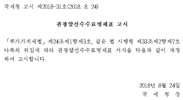 국세청고시제2018-31호관광알선수수료명세표고시.hwp