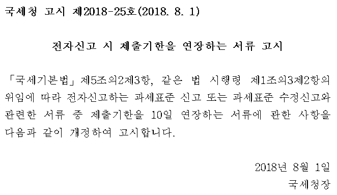 국세청고시제2018-25호(전자신고시제출기한을연장하는서류고시)개정전문.hwp