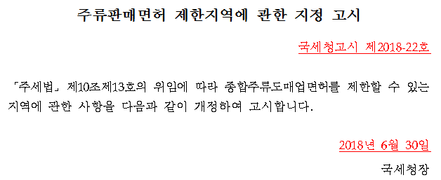 주류판매면허제한지역에관한지정고시(국세청고시제2018-22호).hwp