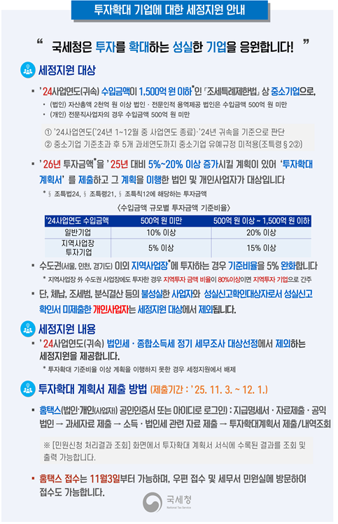 2025년 투자확대 기업에 대한 세정지원 안내.hwpx