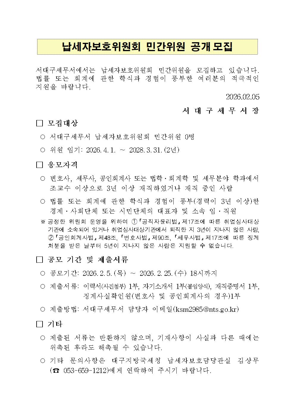 2026년 민간위원공개모집 공고문(서대구세무서).hwpx