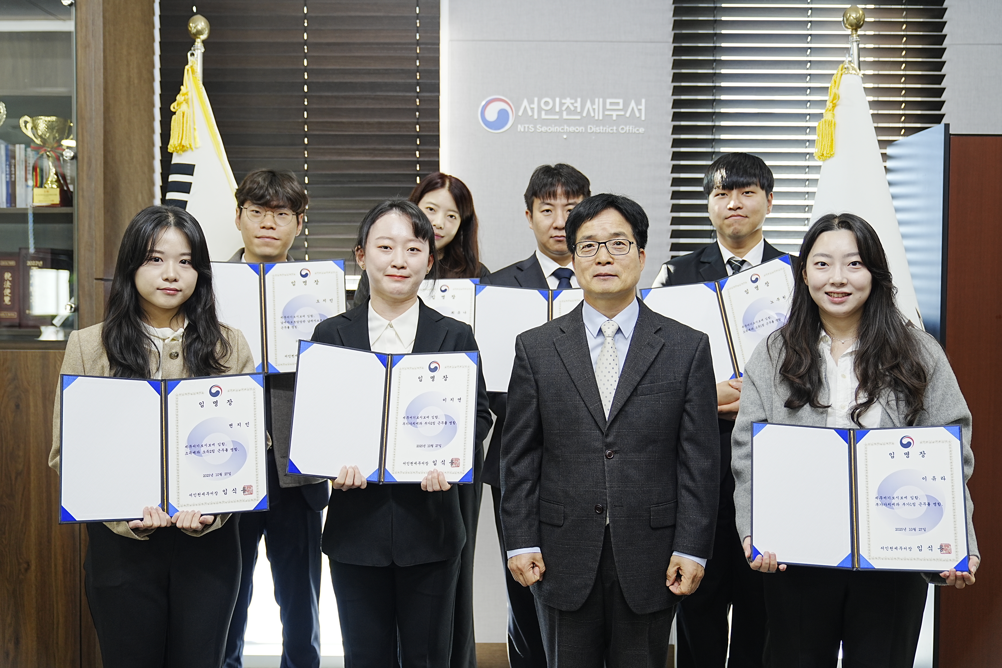 서인천세무서(서장 임식용)는 2025년 10월 27일(월) 신규직원 7명에 대한 임용장 수여식을 진행하였습니다.