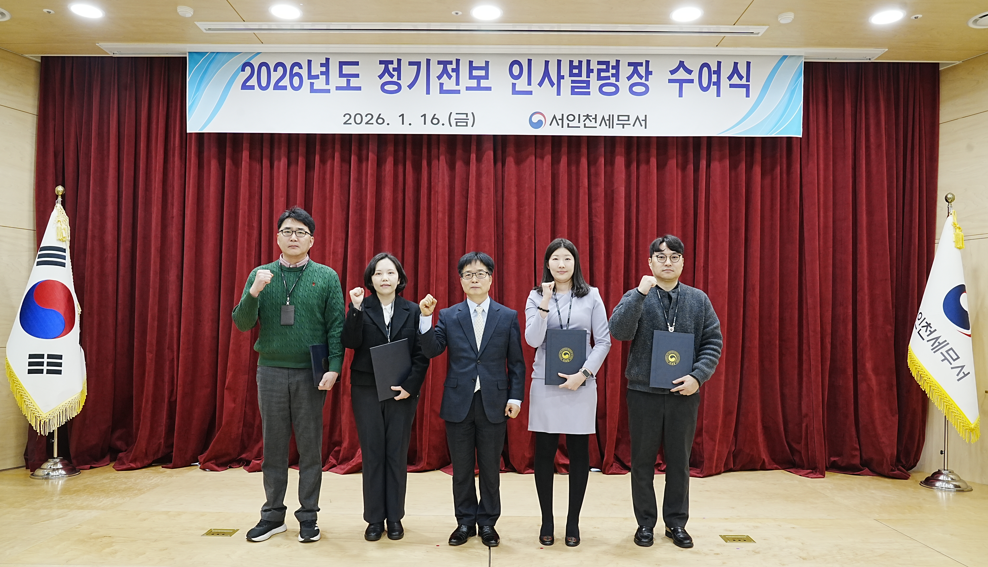 서인천세무서(서장 임식용)는 2026년 1월 16일(금) 정기전보 인사발령장 수여식을 진행하였습니다.