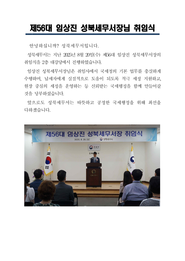 제56대 성북세무서장 취임식 사진