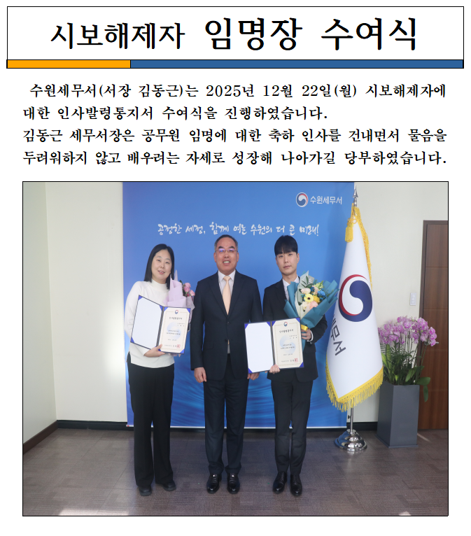 시보해제 직원 임명장 수여식