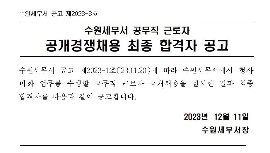 20231211_수원세무서 공무직 근로자 최종합격자 발표.hwp