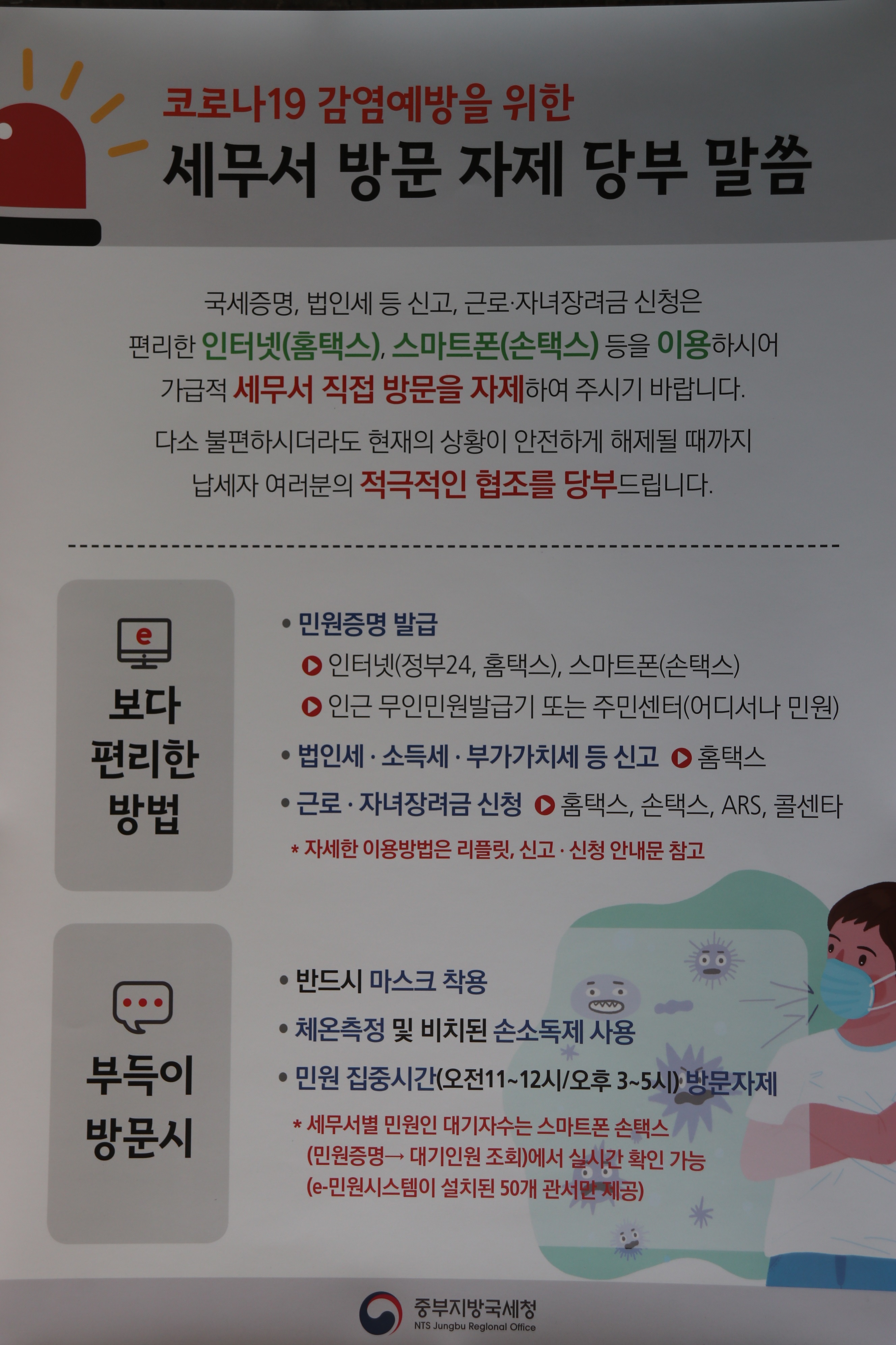 코로나19 감염예방을 위한 세무서 방문 자제 당부말씀