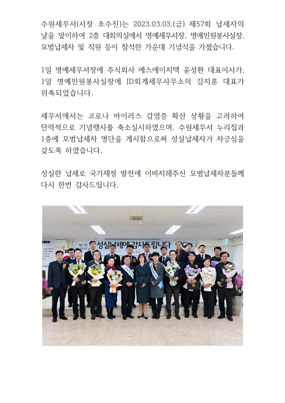 김진현 중부지방국세청장 수원세무서 격려 방문