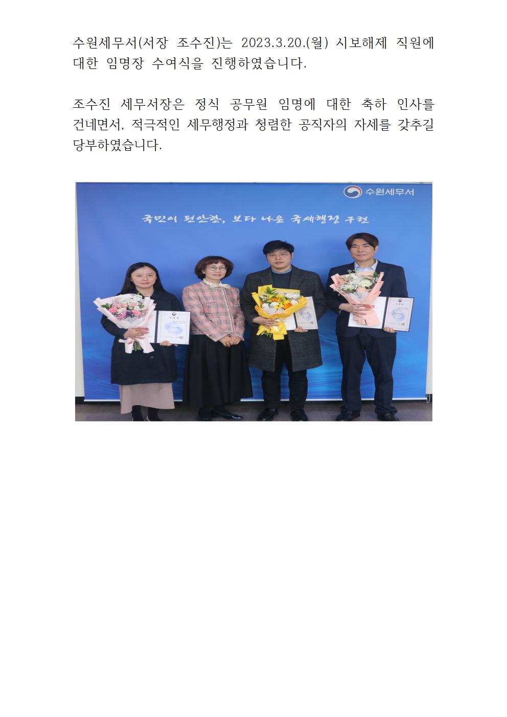 시보해제 직원 임명장 수여식