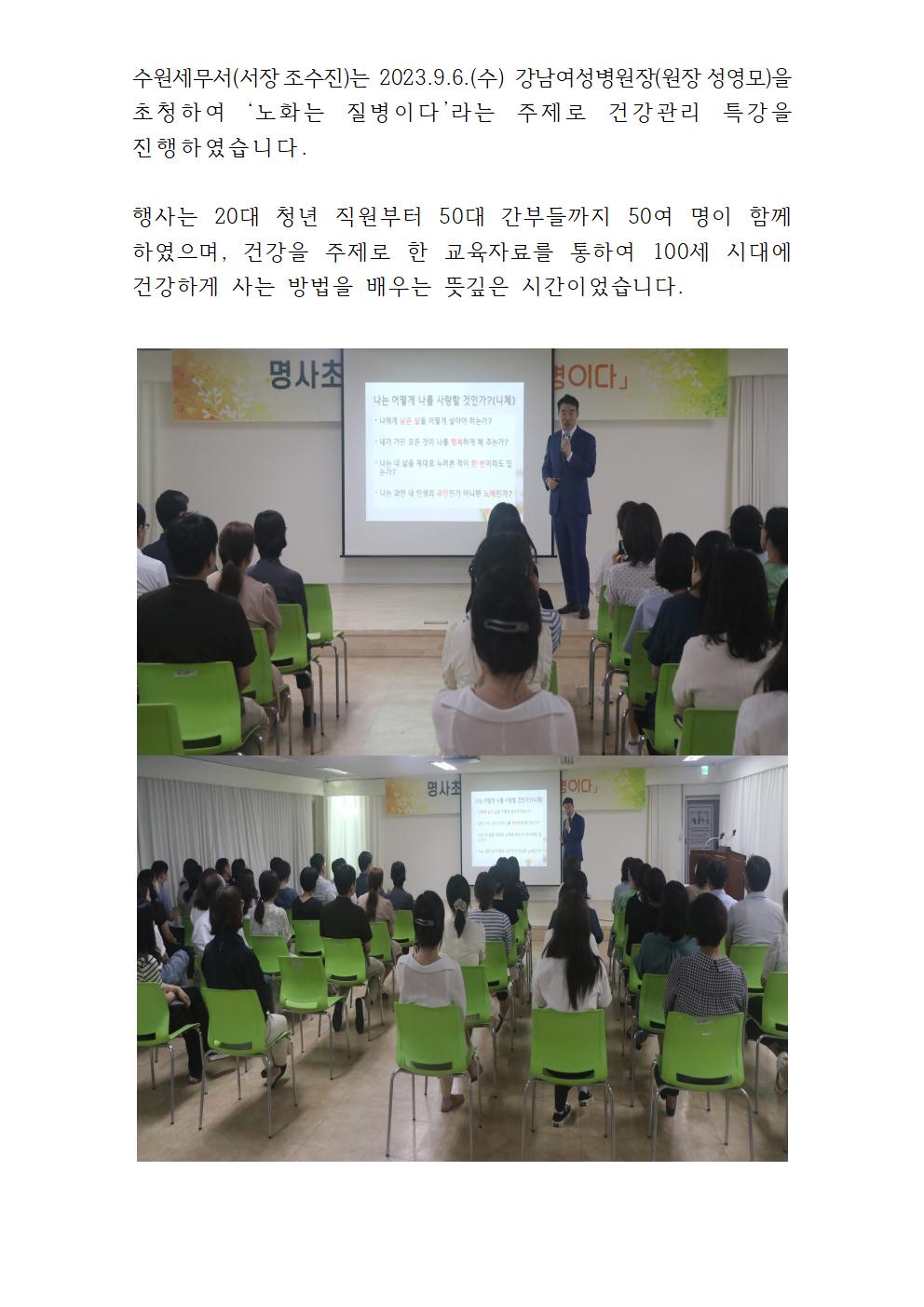 관내 명사 초청 건강관리 특강