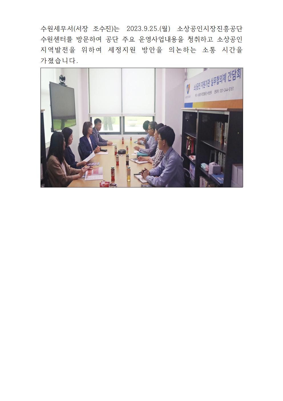 수원세무서, 소상공인시장진흥공단 수원센터 방문