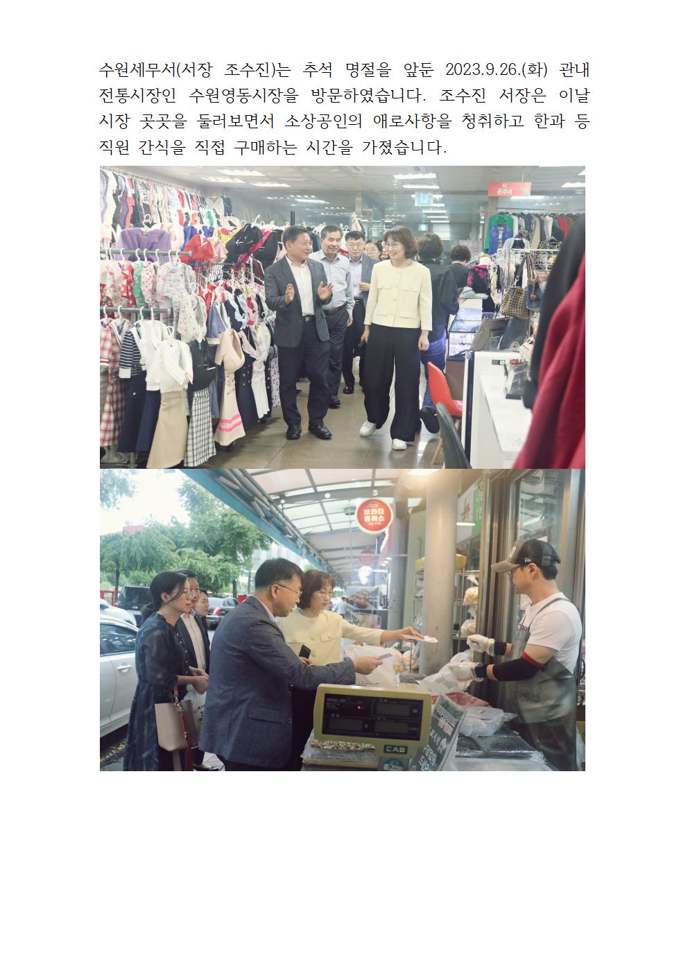 수원세무서, 수원영동시장 방문