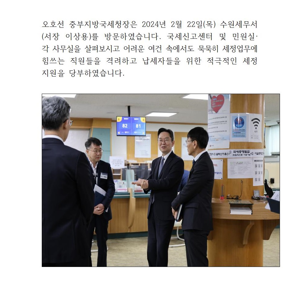 오호선 중부지방국세청장 수원세무서 격려 방문