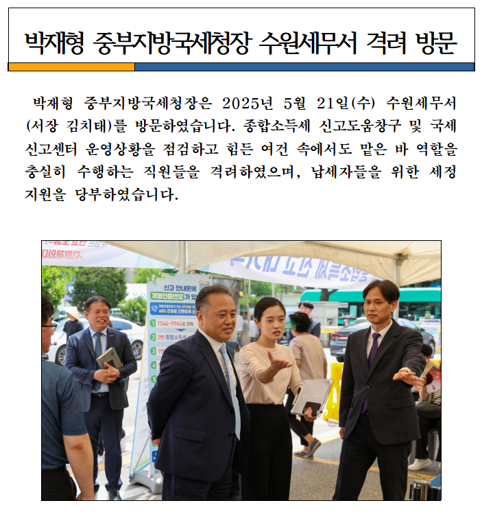박재형 중부지방국세청장 수원세무서 격려 방문