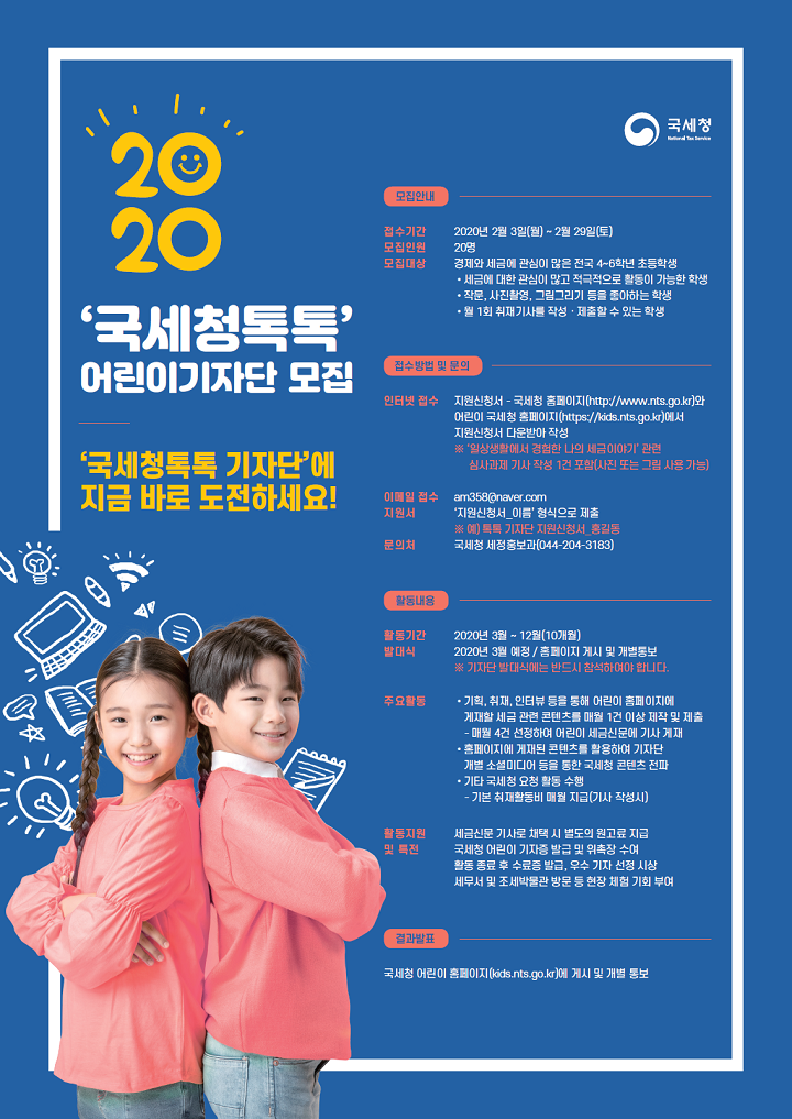2020년 국세청 톡톡 어린이 기자단 모집안내
