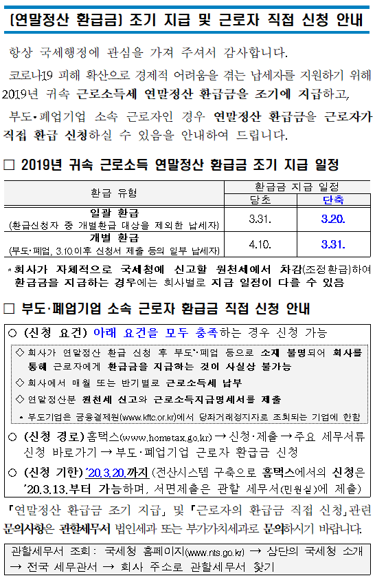 (연말정산 환급금) 조기 지급 및 근로자 직접 신청 안내
