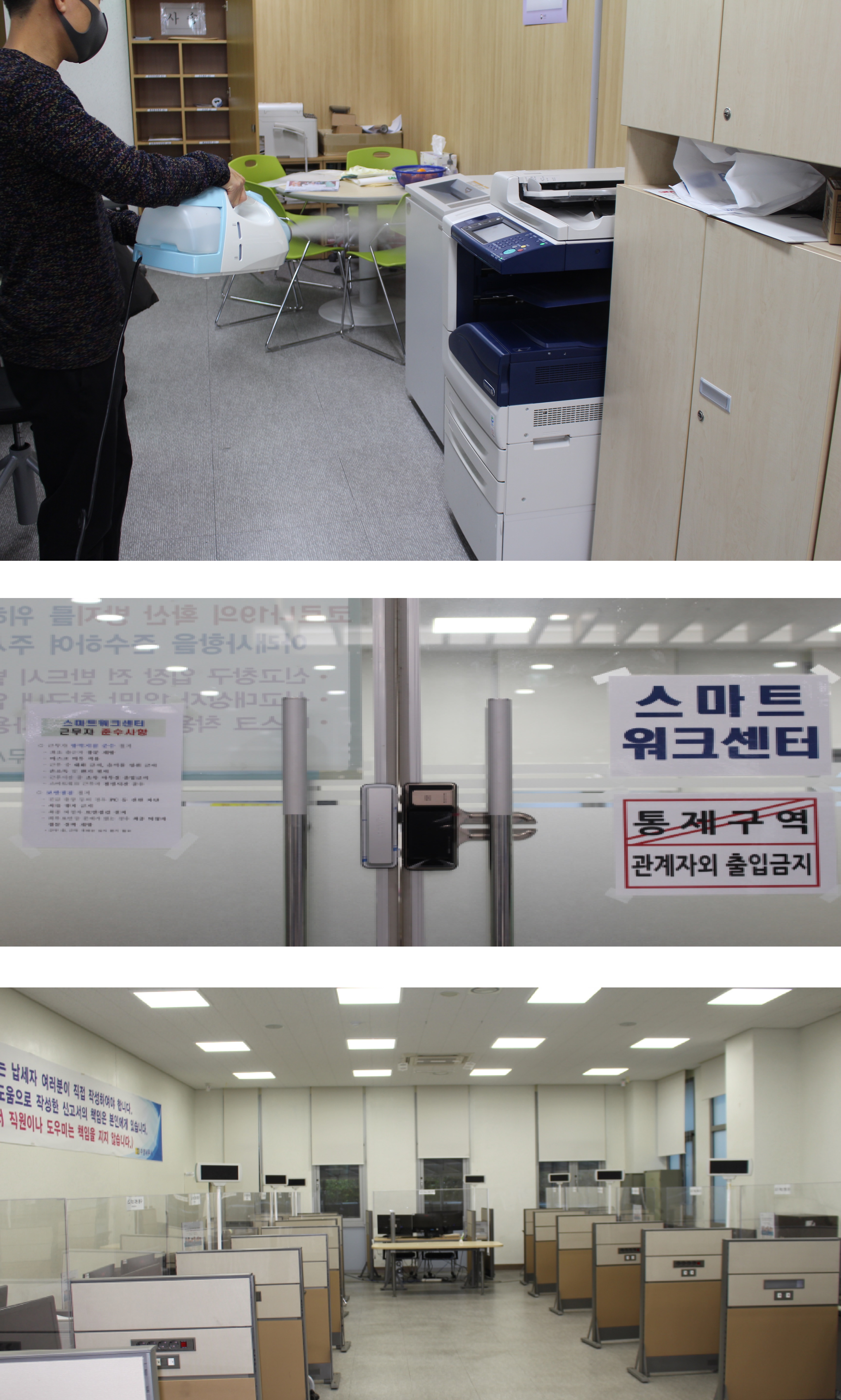 수영세무서에서는 코로나19감염증 확산방지를 위해 자체 방역 및 스마트워크센터를 운영하고 있습니다.