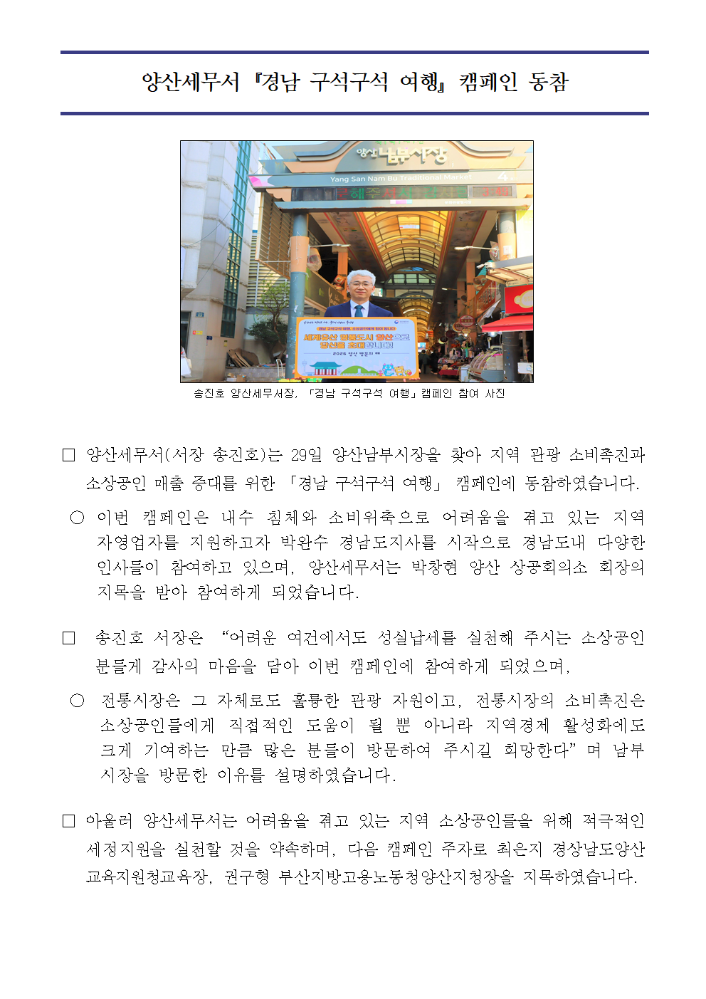 양산세무서 『경남 구석구석 여행』 캠페인 동참