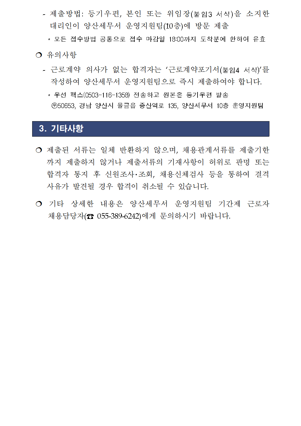 2025-03호 양산세무서 기간제 근로자 공개채용 최종합격자 제출서류.hwp